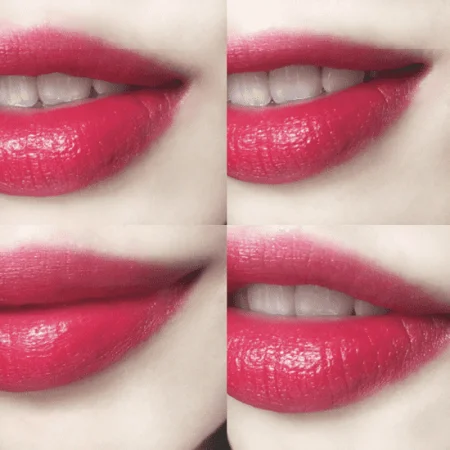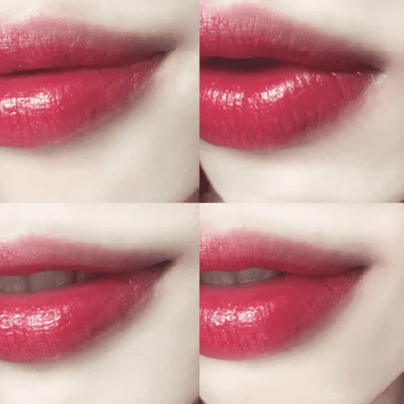 72比40就年轻很多,是个元气的红色,和细管10有点像,但着色更加饱和扎实。膏体也有细金闪,但是上嘴不太明显,红色不挑皮,四级也都适合,算是个不会出错的颜色吧。
